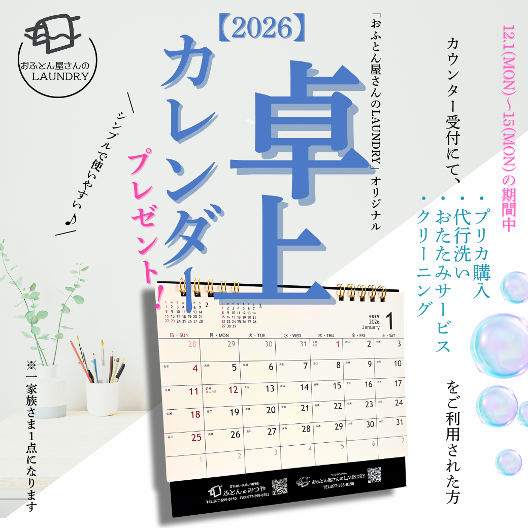 をご利用されたお客様に “「おふとん屋さんのLAUNDRY」オリジナル2026年度卓上カレンダー” をプレゼント!!!!!!